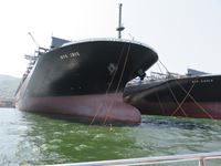 1隻の艦艇が横付けされていましたが、何か補修をしているのでしょうか。
