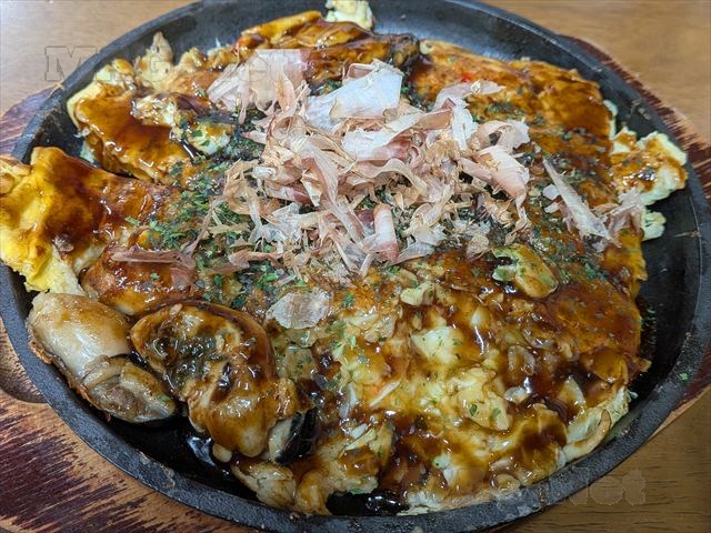 焼けた生地の上にも、2粒の牡蠣がトッピングされて出てきます。