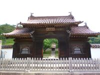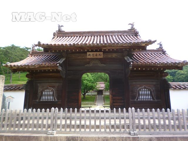 駐車場の先に、寺の入り口を思わせるような大きな「公門」があります。