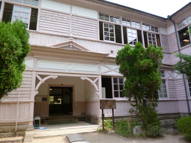 いまで言うところの瓦屋根の「閑谷小学校」の奥に、白と淡いピンクの姿をした木造2階建ての校舎があります。