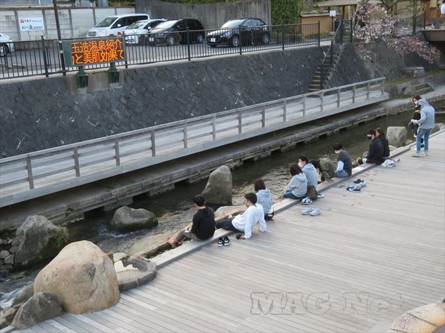 近くには足湯もあり、多くの人が楽しんでいます。