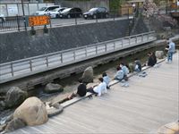 先ほどは足湯があったのですが、この辺りに来ると玉湯川も足湯場になっています。