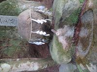 正面に拝殿、そしてその奥にあるのが球状の石で、そこから水が湧き出ています。