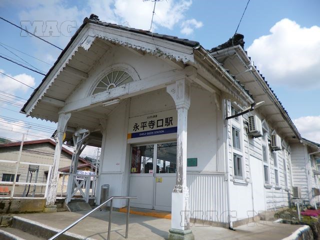 そして着いた永平寺口駅の駅舎は、電車が走るホームの向こうにあります。