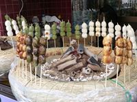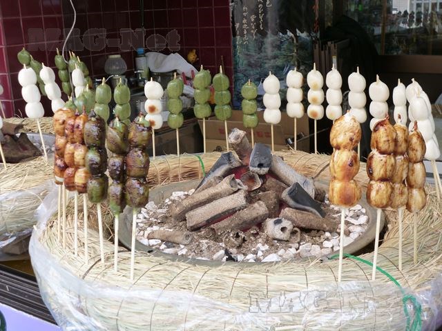 炭を囲んで焼かれている、団子の香ばしい匂いが漂っています。