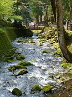 一方外に出て、苔むした中を流れる永平寺川のせせらぎを眺めていると、これこそが心を和やかにしてくれるひとときでした。