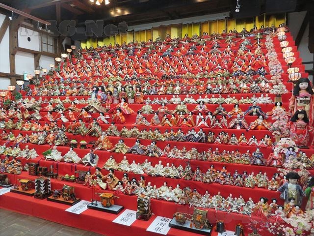 江戸時代から受け継がれてきた人形もあり、蔵いっぱいの20段のひな壇に収められた圧巻の姿です。