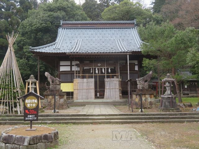 「民俗博物館」の先には神社の「柳廼社」があり、ここから城への山門と登山道が続きます。