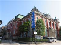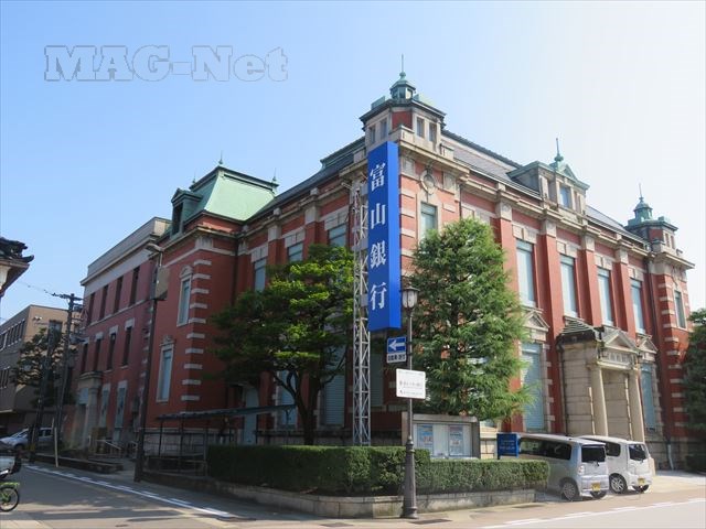 ここは「赤レンガの銀行」と呼ばれる「富山銀行本店」で、1914年に「高岡共立銀行本店」として建てられたものです。