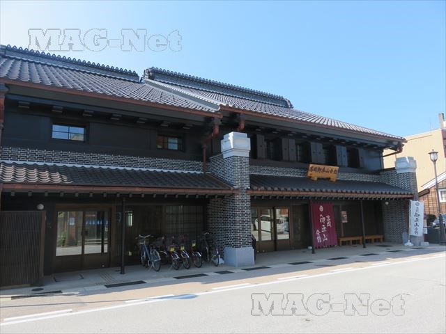 北海道との廻船の商いで巨万の富を築いた商家で、土蔵造り2階建ての外観は黒漆喰で仕上げられています。