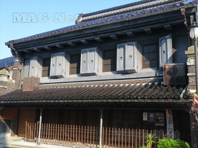 綿糸などの卸商を営んでいた商家で、2階の窓は観音開きの土扉が備えられています。
