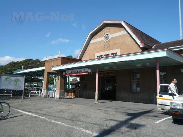 マンサード屋根の洋風建築は駅開業当時の建物で、真ん中が高く2段に折れた屋根の形が特徴的です。