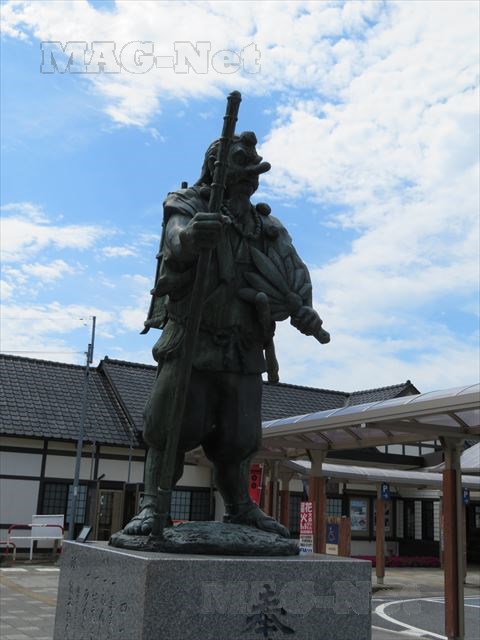 JR上越線の沼田駅前ロータリーには、天狗の像があります。
