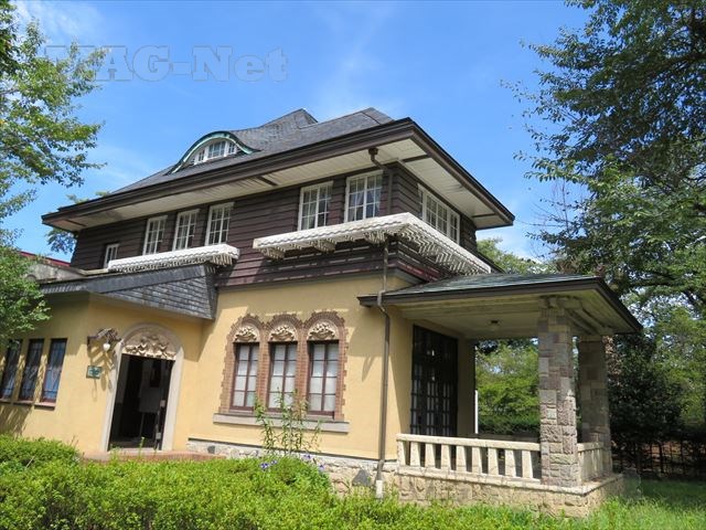 1924年建設の木造3階建ての建物で、外観はアーチ窓を配した洋館ですが、内部には和室を有する日本的な造りです。