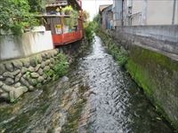 その途中に、道の隅に水が勢いよく流れています。