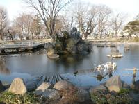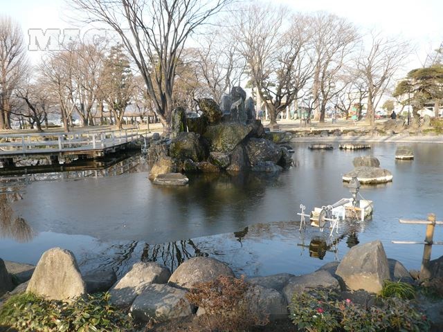 訪れた時は冬場ということもあって、池には氷が張り噴水も止まり寒々としていました。