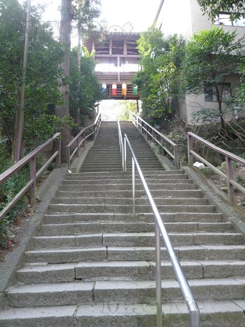 バス停からは山門の先に、長い長い階段が見えます。