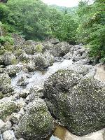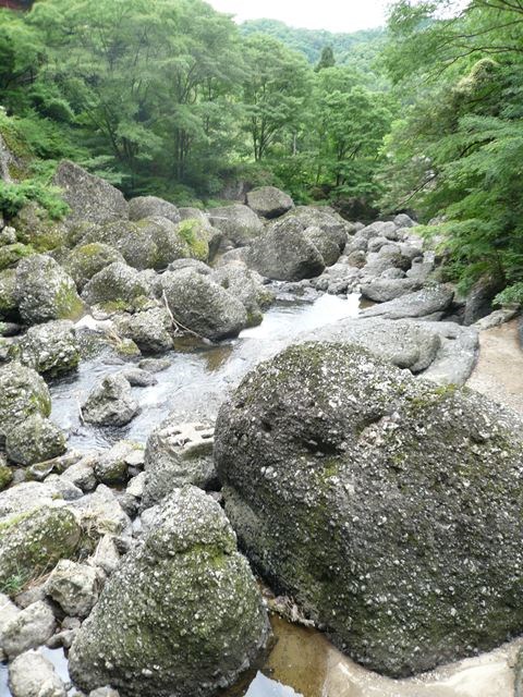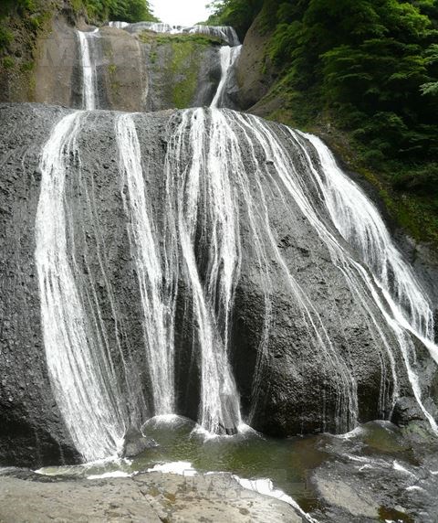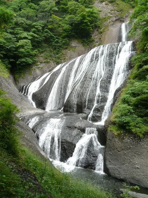 荒々しい滝というよりは、なめらかな岩肌を舐めるように白く尾を引きながら落ちる水がきれいな滝です。