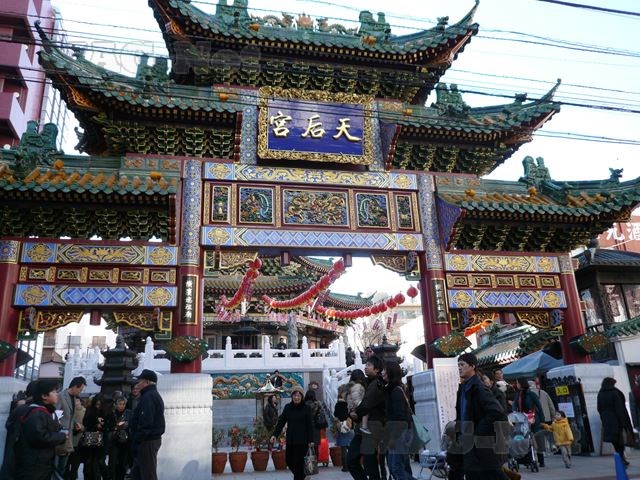 石川町駅に続く朱雀門の手前のところには、門に「天后宮」の文字が刻まれた横浜媽祖廟があります。
