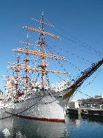 最初に目につくのは、帆船日本丸です。