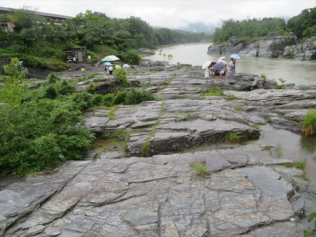 この辺りは「岩畳」と呼ばれ、結晶片岩が隆起し岩畳となって広がる長瀞の中心地です。