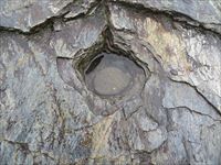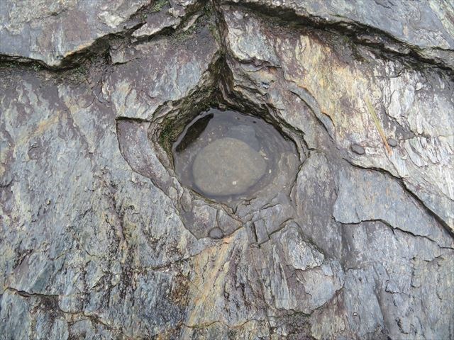 そんな「岩畳」には、ゴルフのホールのような穴が開いていることが判ります。
