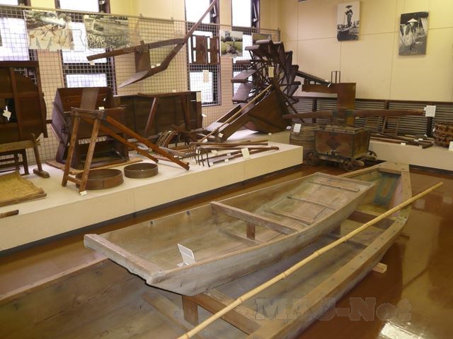 中には丸太舟などの昔の資料や、農具、せんべい製造具などの展示が行われています。