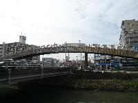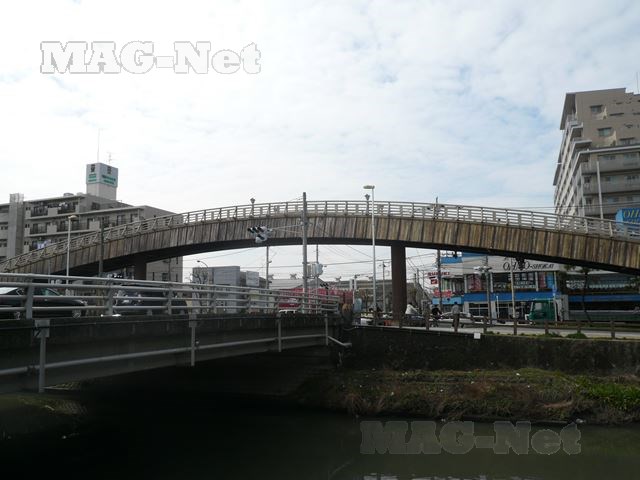 そして交差点の歩道橋は、一見して木製の橋を思わせるような姿をしています。