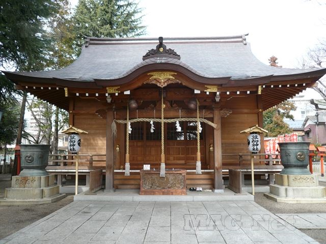 草加駅前の線路を挟み日光街道の反対側には、この辺りの11社を合祀した草加神社があり、草加の総鎮守として祀られています。