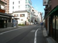 さらに南に歩いて行くと、道の両側にビル、マンションは立ち並んでしますが、なんとなく当時の風情が感じられます。