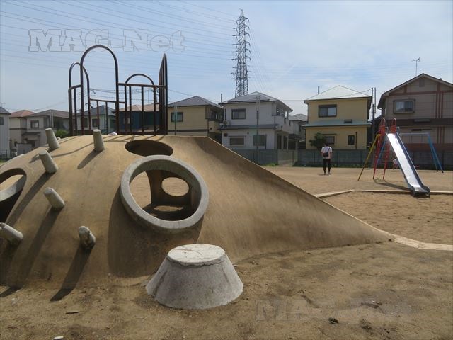子供たちの遊び声が聞こえる「別府公園」の横に、遊歩道があります。