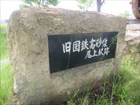 石碑の横には、ここもレールの上に乗った車輪がモニュメントとして造られています。