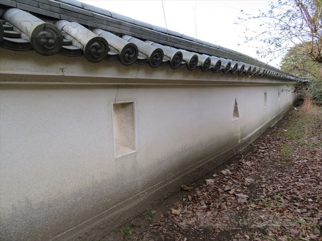 2階の屋根裏部屋には換気口となる虫籠窓が並び、飾り模様は左官職人の腕の見せ所です。
