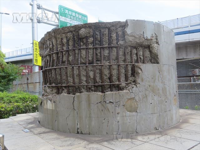 近付いてみると、これが阪神・淡路大震災の時に記載した阪神高速道路の橋脚だったということです。