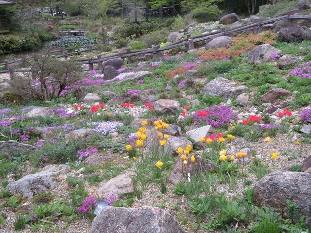 山肌を使った植物園で、高山の岩場の風景を模して植物が植えられています。