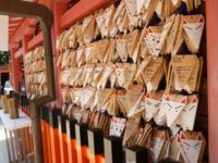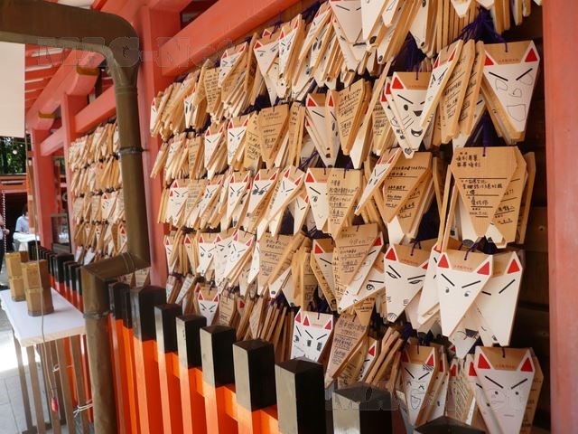 ここの絵馬は狐の顔が描かれた逆三角形のもので、一般の神社とは一味違ったユニークなものです。