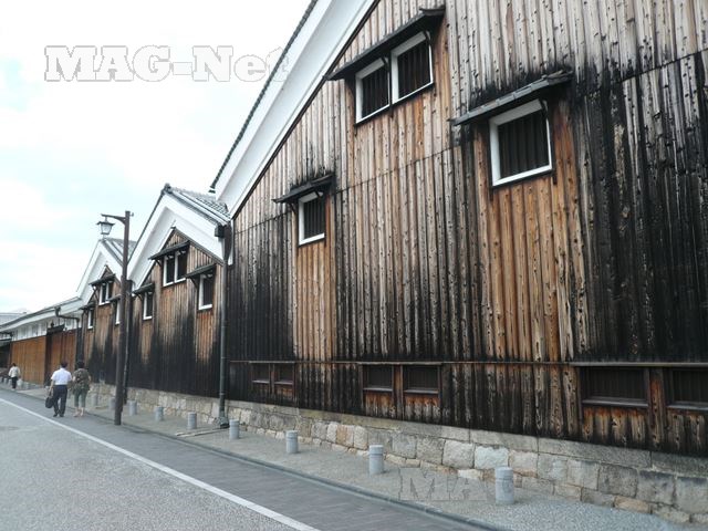 東壕川から1筋入った所に繰り広げられる木と漆喰が美しい酒蔵の街並みです。