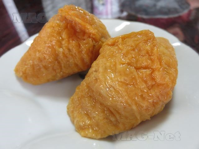 食堂の前のメニューサンプルには、お稲荷さんにちなんだ稲荷寿司が蕎麦やうどんとともに並べられています。