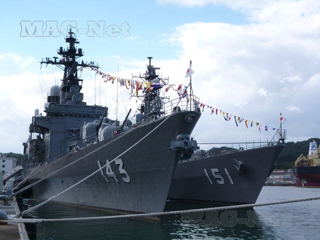 護衛艦「みょうこう」、「あたご」、「しらね」、「あさぎり」が勢揃いし、凛々しい姿を披露しています。