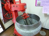 西舞鶴駅のパスの待合室には、その片隅が「かまぼこ知ろう館」として、蒲鉾の製法の説明と焼きゴテや石うすが展示されています。