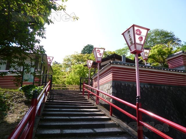 その先には中之坊、さらに先の左右に講堂と金堂が配置され、正面に本堂が構えています。