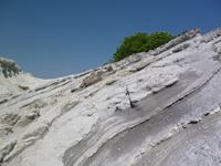 石段を登ると、その先には真っ白の岩肌が広がります。