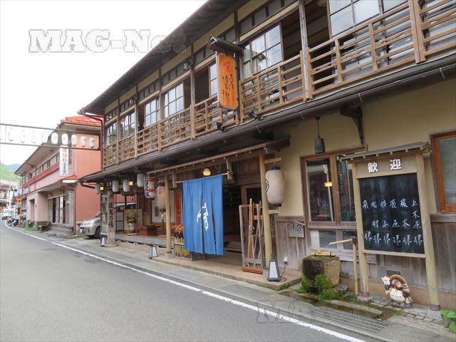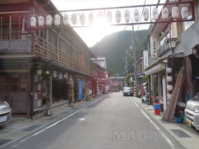 左右の旅館を眺めながら、温泉街の通りを歩いて行きます。