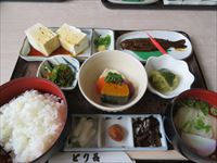食堂に入り、豆腐定食を注文します。
