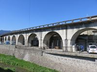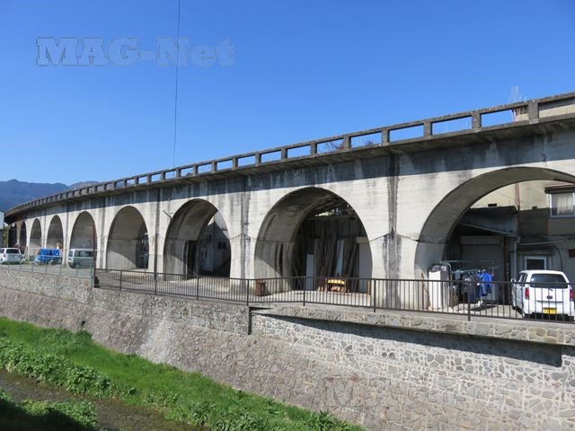 「五新鉄道」の高架跡の先には、古い町並みの通りの最終地点になります。