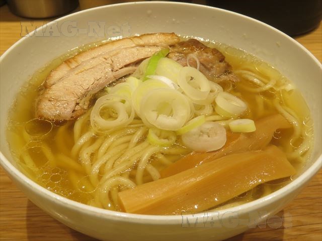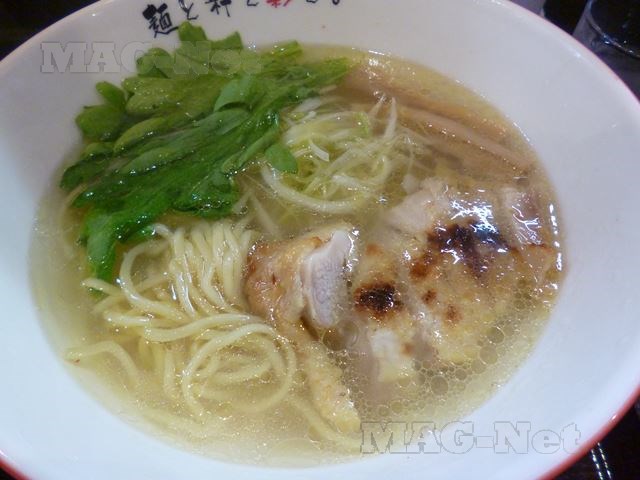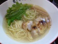 澄んだ出汁の塩ラーメンに鶏肉が入っており、あっさりした味です。