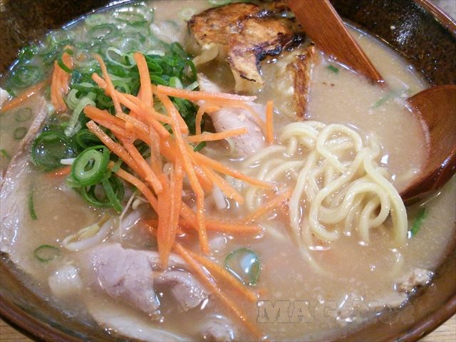 トッピングのネギとニンジンもしゃきしゃきして、美味しいです。
