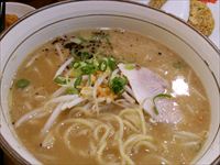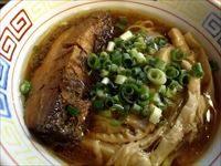 とんこつベースの醤油ラーメンで、チャーシューはこってりのバラと脂身の少ないモモを選ぶことができます。