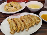 ここの餃子もお薦めで、皿に取り分けた定食風のものとラーメン鉢に入れたものの2通りがあります。