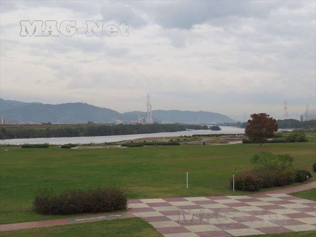 「枚方宿鍵屋資料館」のすぐ裏は、淀川の河川敷が広がります。